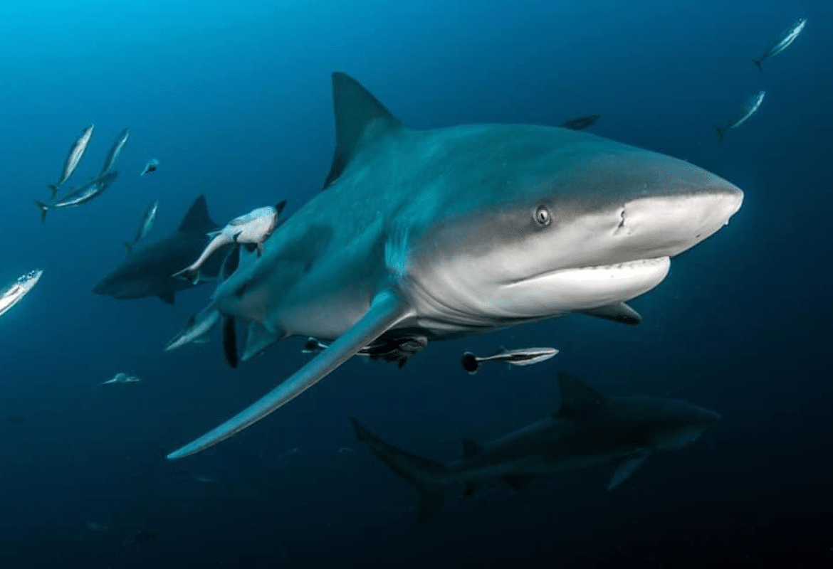 Der Bullenhai ist einer der mächtigsten Haie von Aliwal Shoal und den nahe gelegenen Protea Banks. Sie sind bekannt für ihren muskulösen Körperbau und ihre Fähigkeit, sowohl im Salz- als auch im Süßwasser zu überleben. In den Sommermonaten können sie mit Ködern angelockt werden, was eine intensive, aber kontrollierte Begegnung mit diesem beeindruckenden Raubtier ermöglicht.