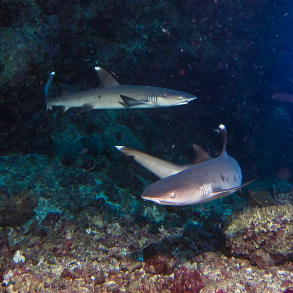 Also a shark with white tips, yet very different in character from the oceanic white tip. The white tip reef shark is a shark that you find mostly near the reef, as the name implies. They are often resting quietly on the bottom, on the sand or a bit more hidden under crevices in rocks. You can find these sharks for example around Marsa Alam (Abu Dabbab) or in southern Egypt, at St. Johs Reef and Fury Shoals.